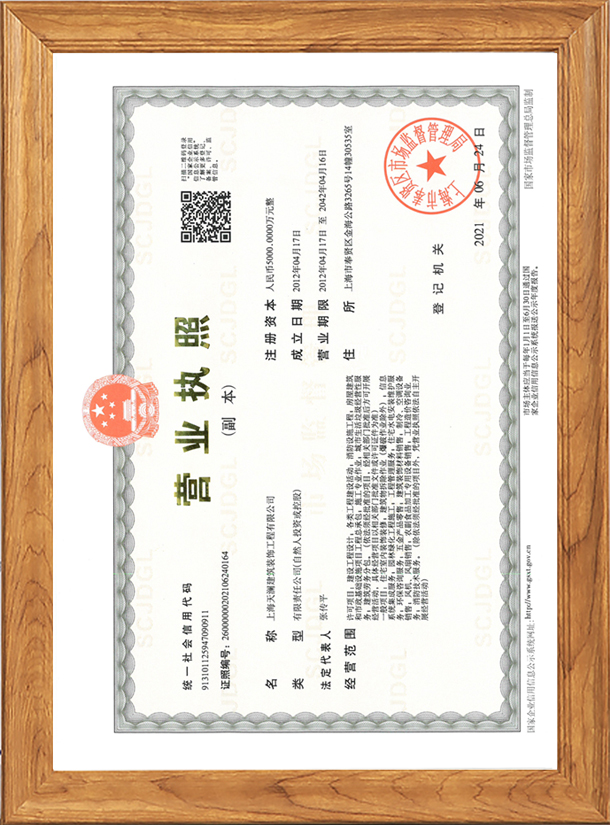 上海天瀾建筑裝飾工程有限公司由熱愛裝修事業(yè)的專業(yè)人士創(chuàng)辦,經(jīng)上海工商行政管理局注冊(cè)登記的專業(yè)上海工裝公司。天瀾建筑裝飾注冊(cè)資本5000萬(wàn),擁有建筑施工總承包三級(jí),鋼結(jié)構(gòu)工程專業(yè)承包三級(jí)建筑裝飾工程專業(yè)承包二級(jí),建筑機(jī)電設(shè)備安裝專業(yè)承包三級(jí),消防設(shè)施工程專業(yè)承包二級(jí)等資質(zhì)。國(guó)家建筑裝飾裝修工程設(shè)計(jì)與施工二級(jí)資質(zhì)單位、上海市建筑裝飾裝修行業(yè)協(xié)會(huì)會(huì)員單位、有上海市建設(shè)和交通委員會(huì)頒發(fā)的“安全生產(chǎn)許可證”。
