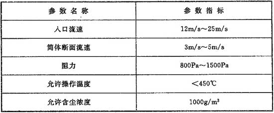 7.2.6 旋風除塵器可作為預(yù)除塵器使用。旋風除塵器計算參數(shù)應(yīng)符合表7.2.6的規(guī)定。