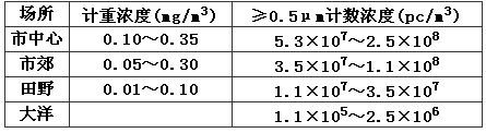 表1 大氣中含塵濃度